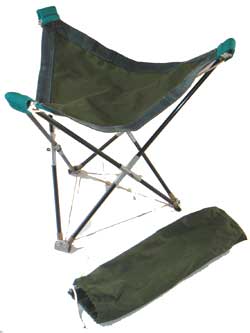 The frame is threaded with shock-cord so assembly is a case of letting the seat pull itself together. All joints top, middle and bottom are hinged so the frame simply folds together compactly, then can be 'broken' (camping terminology) at the central pivots and folded in half.